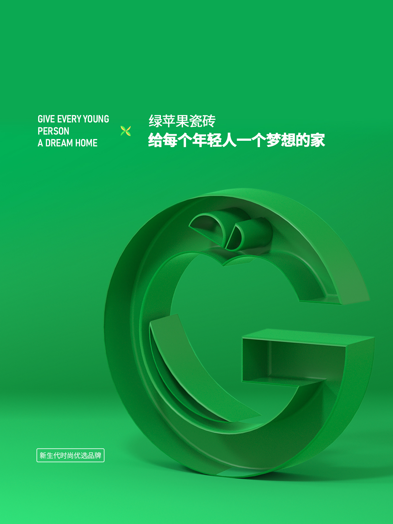 新生代品牌瓷磚綠蘋果瓷磚GREEN APPLE 始于2010年,糅合潮流元素與多變格調(diào),優(yōu)選品質(zhì)好物,用顛覆創(chuàng)新的思維去組合夢(mèng)想空間,打造時(shí)尚、激情、富有情感互動(dòng)的理想家,其中張揚(yáng)著年輕、奮斗和快樂(lè)的DNA。產(chǎn)品集合國(guó)際潮流色彩,以“給每個(gè)年輕人一個(gè)夢(mèng)想的家”為品牌使命,傳遞正青春的簡(jiǎn)單理念和細(xì)膩入微的質(zhì)感精神。
